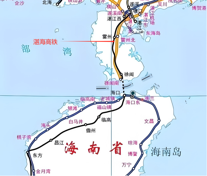 湛江至海口高速铁路位于雷州半岛至海南岛之间,是全国高速铁路网“八纵八横”之包(银)海通道的组成部分,北端连接合湛客专、茂湛铁路、广湛客专及张海客专,南端以铁路轮渡通过琼州海峡与海南环岛高铁和海南西环货线相连。